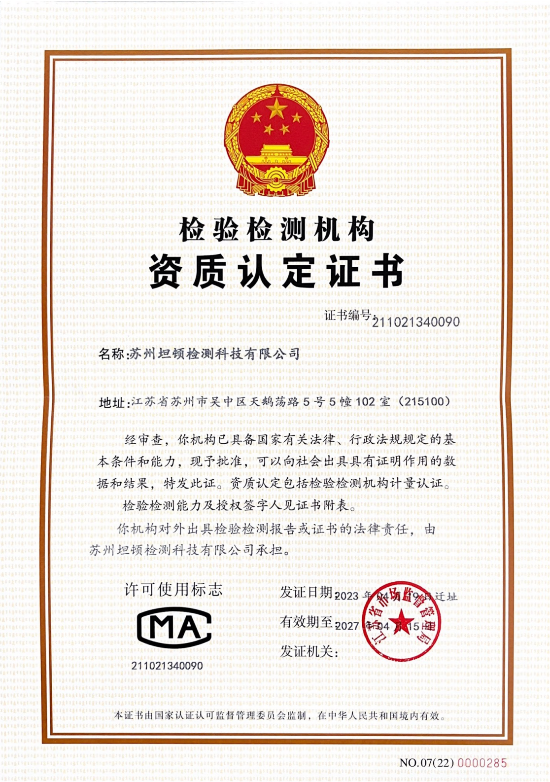 246天天好资料免费精选成立于2018年,公 司主要为客户提供第三方检测、认证、质量鉴定及咨询培训等技术服务。公司先后取得CNAS实验室认可证书(证书编号:L15967) , CMA检验检测机构 资质证书(证书编号:211021340090),国家高新技术企业(证书编号:GR202032013075),江苏省民营科技企业及科技型中小企业等荣誉资质。