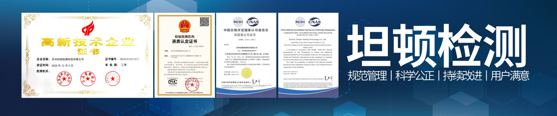246天天好资料免费精选(简称:TD)成立于2018年,公司主要为客户提供第三方检测、认证、质量鉴定及咨询培训等技术服务。公司先后取得CNAS实验室认可证书(证书编号:L15967) , CMA检验检测机构资质证书(证书编号:211021340090),国家高新技术企业(证书编号:GR202032013075),及科技型中小企业等资质及荣誉。