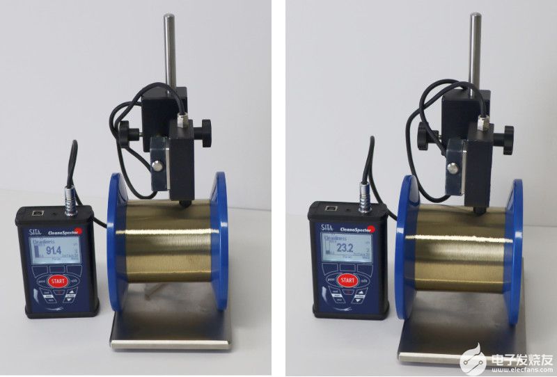 如图所示,德国析塔SITA表面清洁度仪能量化测出两种样品清洗前后的清洁度差异。